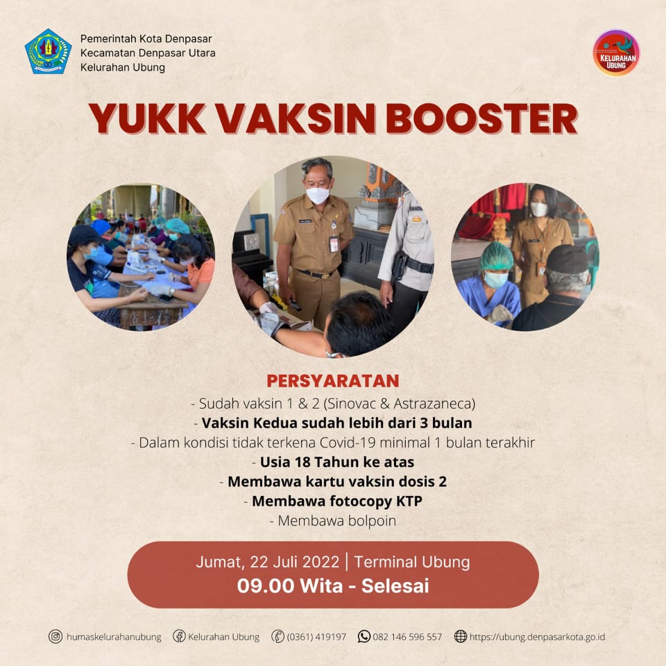 Buat warga yang belum divaksin booster, besok Puskesmas II Denpasar Utara mengadakan vaksin booster di Terminal Ubung.
