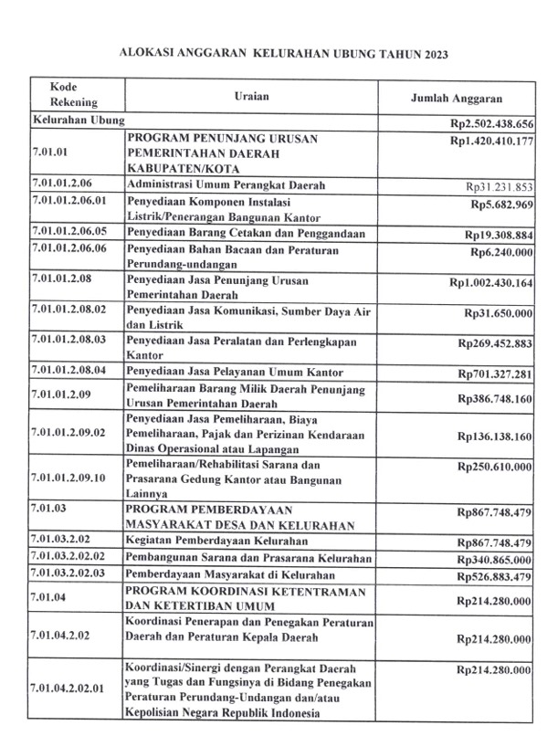 Alokasi Anggaran Kelurahan Ubung Tahun 2023